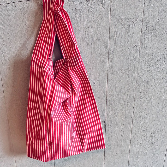 Baton de nuuno (バトンデヌウノ)ストライプのエコバッグ 鮮やかな赤ピンク色がポイントのシンプルなデザインのeco bagです。 くるくるとたたんでポケットにくるっとしまうことが出来ます。 マチがあるので、1Lの牛乳もすっぽり入る大きさです。 素材 :コットン カラー:赤ピンクと白のストライプ サイズ:タテ約36cm・ヨコ約21.5cm・マチ約5cm・ハンドル約36cm(ポケット H13cm W15cm) ・ひとつひとつ丁寧に作っていますがハンドメイド品の為、少々の色の濃淡・個体差などがあります。 ・洗いをかけてない生地もあります。多少の縮みが生じる場合があります。 ・記載サイズは目安になります。多少の個体差は生じます。