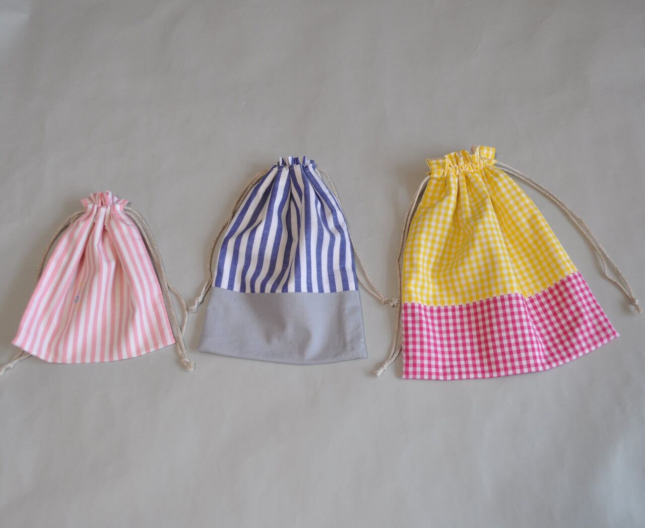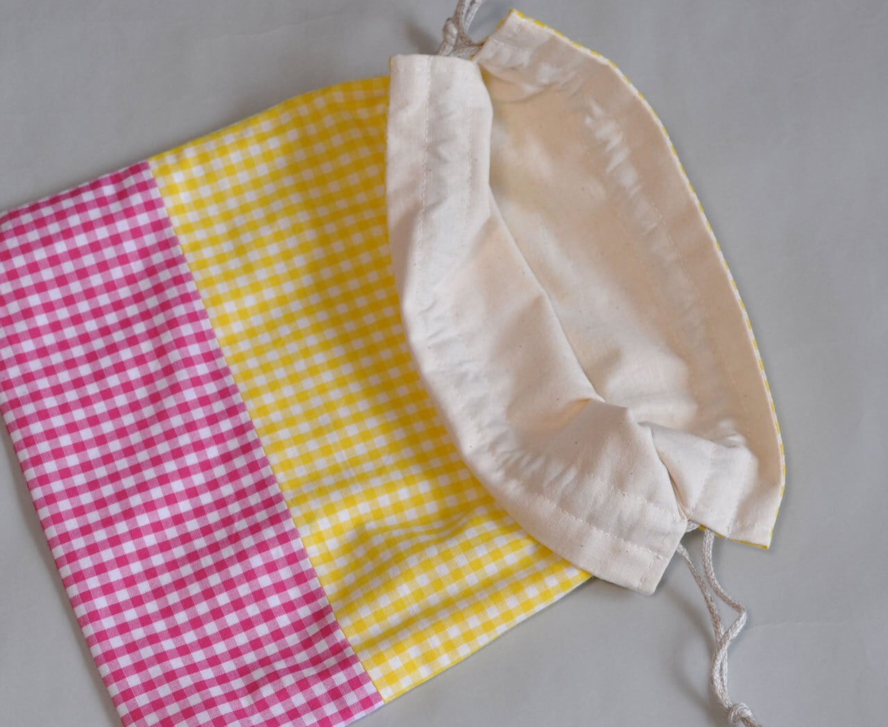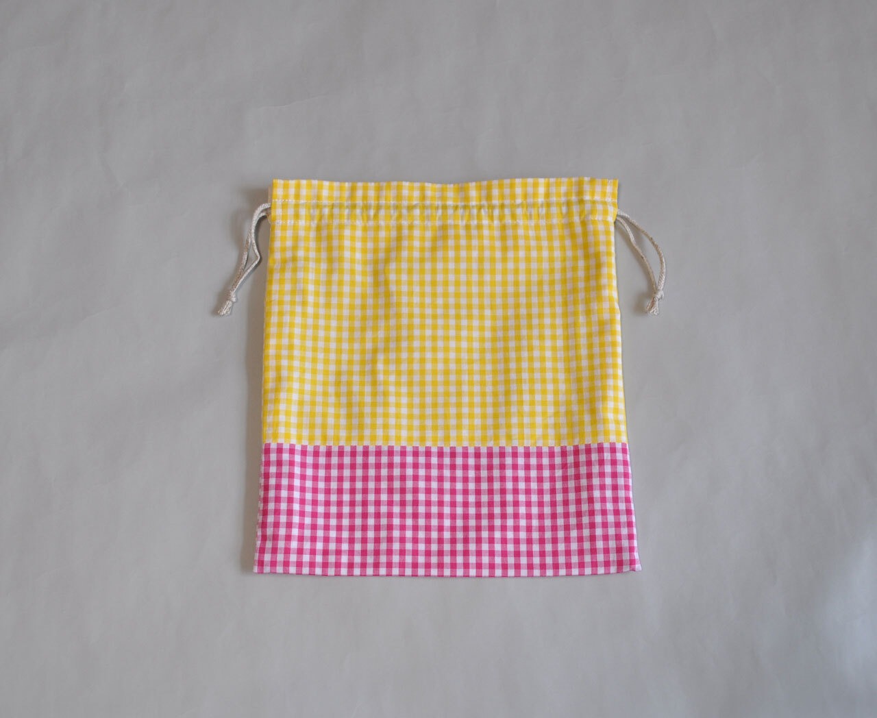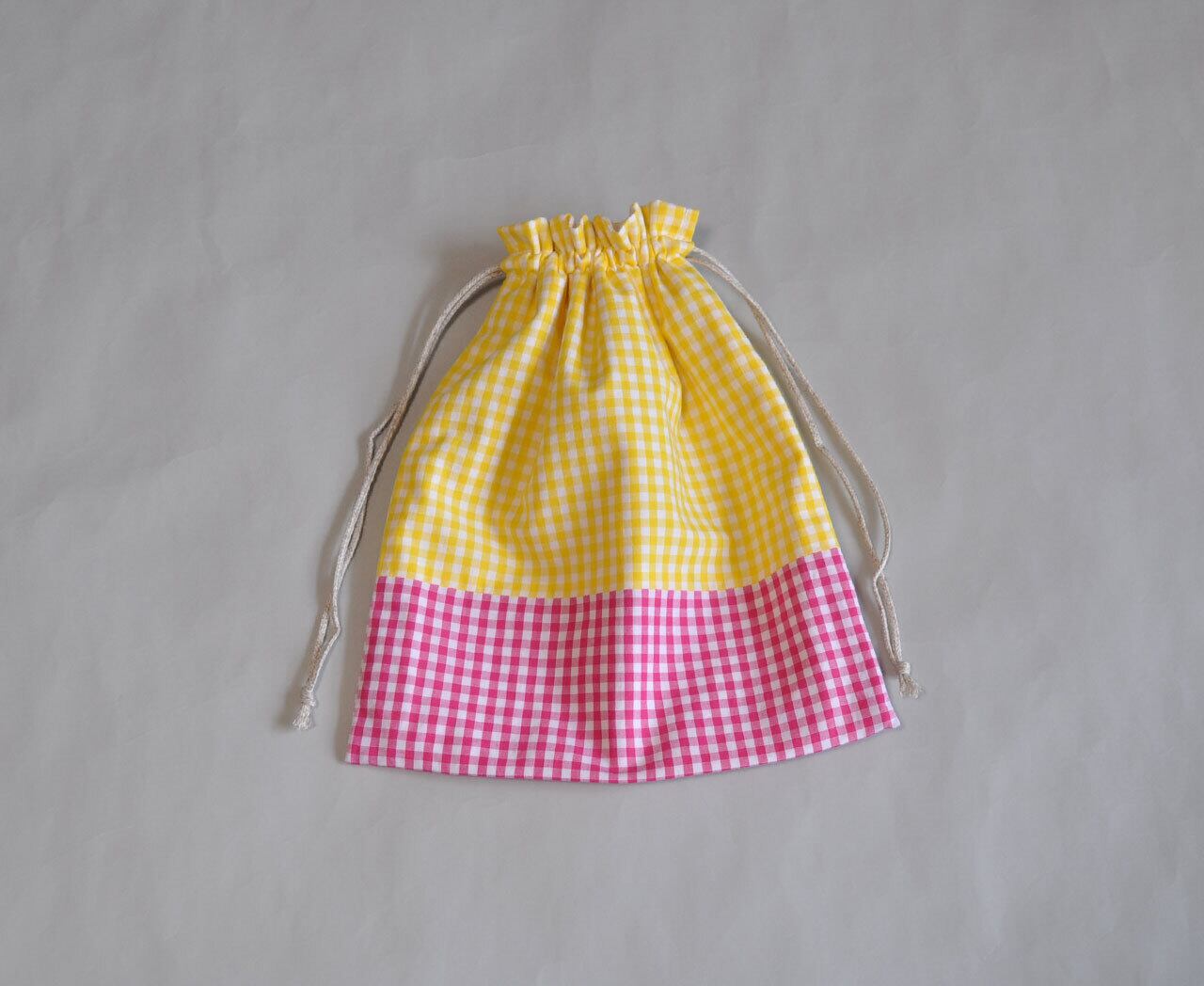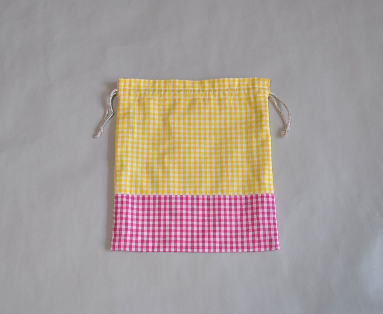 Baton de nuuno 黄色とピンクのギンガムチェック巾着