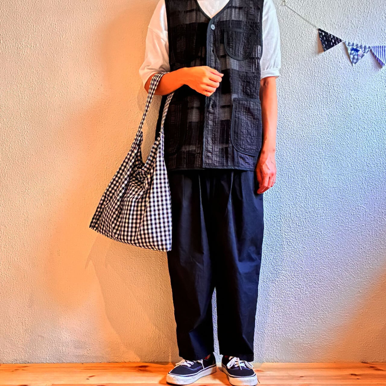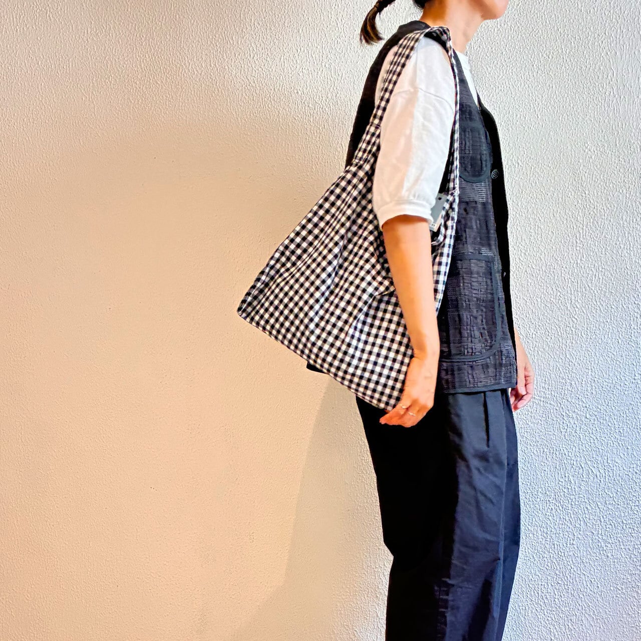 黒のギンガムチェックは、スタイリングを選ばず使っていただけると思います。